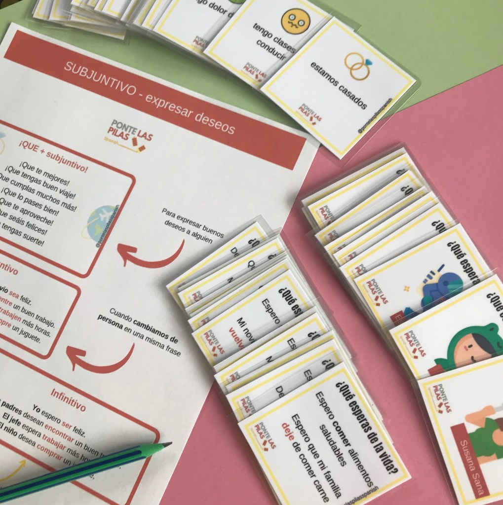 Aquí viene la actividad con el uso del subjuntivo, el tiempo verbal que no debe ser nombrado y que todo alumno teme tan solo con oírlo… Pues eso va a cambiar con estas tarjetitas y su uso para expresar deseos!