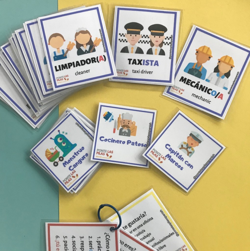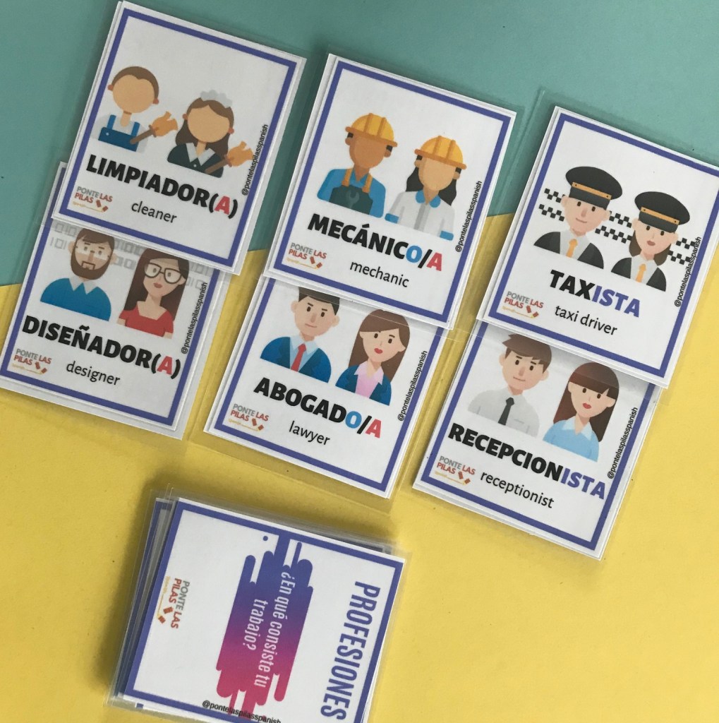 - 16 tarjetas de profesiones con contraportada opcional (en español e inglés)