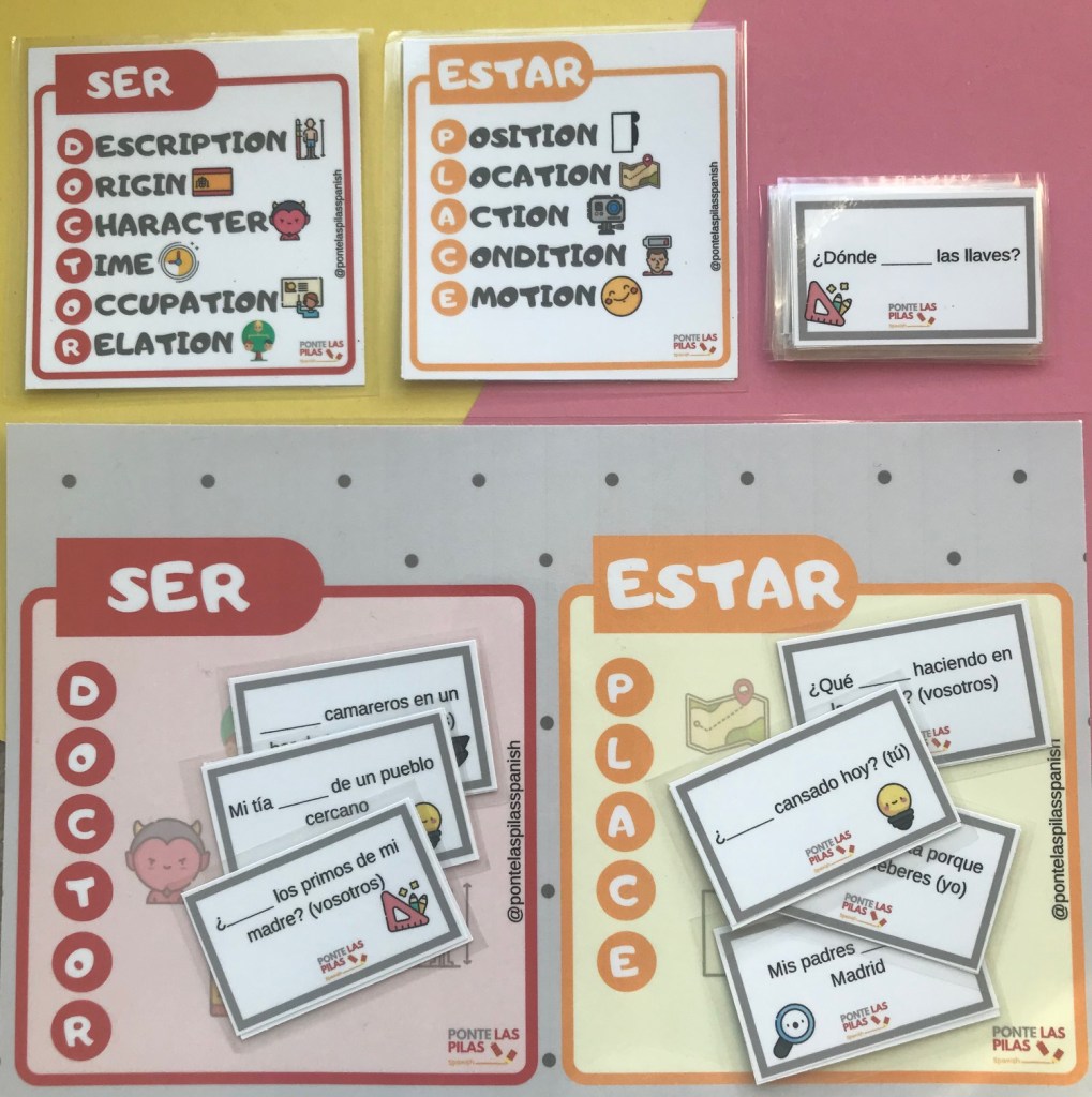 • 24 tarjetas con usos de ser y estar diferente significado