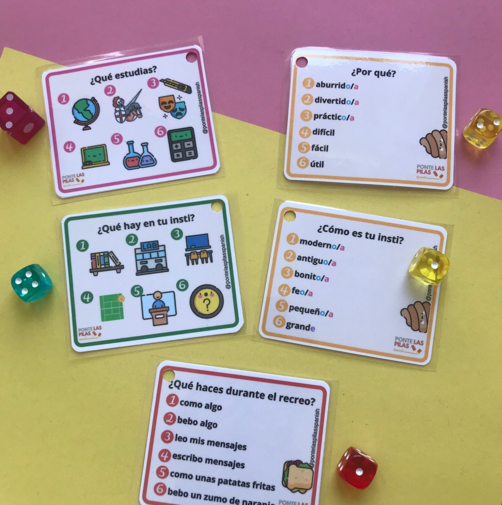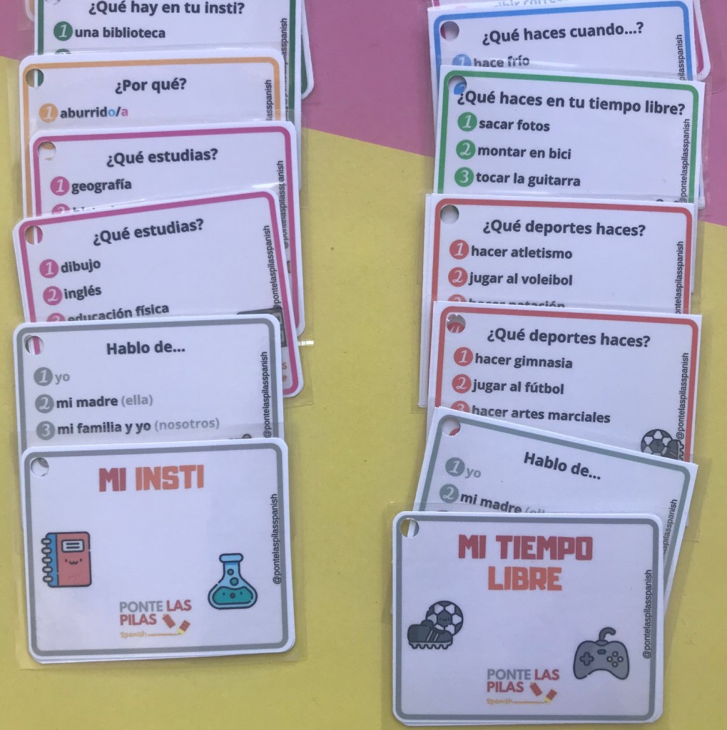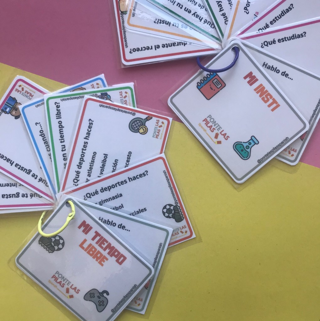 ¡Hola a todos! Vuelvo con mis tarjetas, y esta vez sobre preguntas del tiempo libre y del insti.