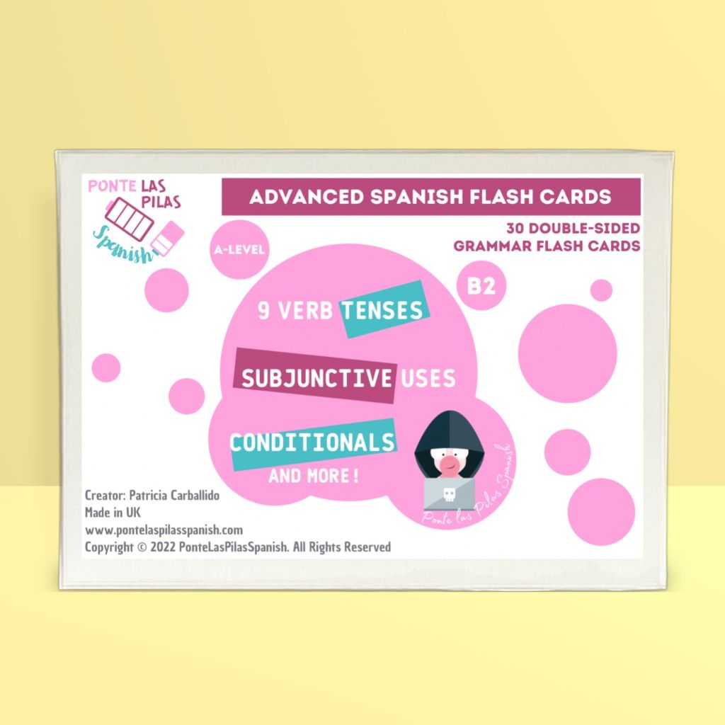 Hay dos sets diferentes, uno para estudiantes de intermedio o Spanish GCSE y otro para estudiantes más avanzados o de Spanish Alevel. El primero contiene la gramática básica, y el segundo va un poco mas allá y se centra en los diferentes usos del subjuntivo y de las condicionales.