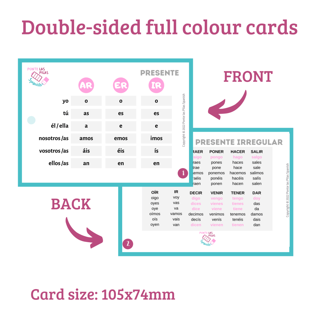 Profesores y estudiantes las encontrarán super útiles para las clases y los deberes. Son pequeñas y fáciles de llevar a todas partes, como a las sesiones de español, al colegio o incluso para ir de vacaciones. Gafas de sol + crema solar + Spanish flashcards = vacaciones en España!