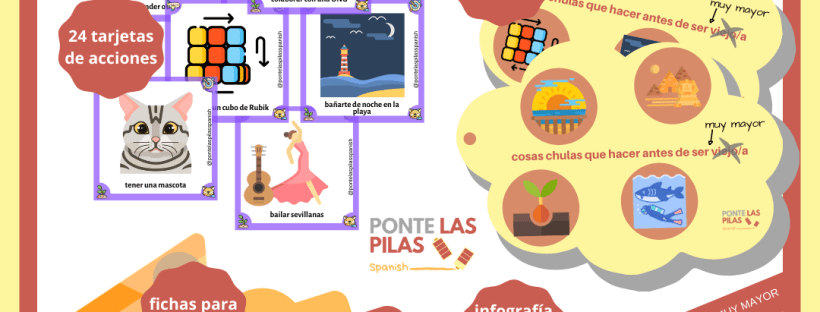 He creado esta actividad con el objetivo de practicar 3 actividades principales, se puede adaptar a niveles elementales o intermedios: COSAS QUE HACER ANTES DE SER MUY MAYOR: destaca el uso del condicional/me gustaría + infinitivo, futuro simple e incluso el subjuntivo PROPÓSITOS DE AÑO NUEVO: saliendo del vocabulario común que doy todos los años, … Sigue leyendo Cosas chulas que hacer antes de ser muy mayor