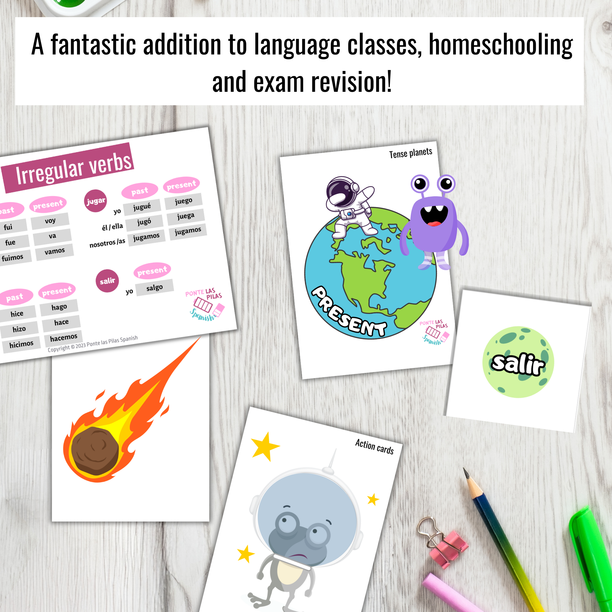 Sumérgete en el emocionante mundo de nuestros juegos de cartas diseñados para hacer que el aprendizaje del español sea más que educativo: ¡divertido y lleno de aventuras! Nuestra exclusiva colección de entretenimiento con cartas ofrece una manera lúdica de practicar las conjugaciones verbales. ¡Embárcate en una aventura espacial mientras conquistas las conjugaciones verbales en forma de planetas en un emocionante juego temático! ¿Prefieres un desafío de frases? Nuestro juego de cartas con nenúfares y una rana aventurera te desafiará a crear frases creativas utilizando vocabulario específico y diferentes formas verbales. ¡Únete a la rana Kormit en estas emocionantes aventuras de aprendizaje y diviértete mientras mejoras tus habilidades en español!